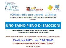 Prosegue il progetto avviato con l’Ufficio Scolastico per la Lombardia – AT MI, per la formazione di Dirigenti e Docenti di Milano e Città Metropolitana, organizzato dall’Associazione Le Radici e le Ali in collaborazione con il Coordinamento CARE, con il Seminario ‘UNO ZAINO PIENO DI EMOZIONI’programmato per lunedì 23 ottobre 2017- ore 15:00 presso il Liceo Classico e Ginnasio Statale Giosuè Carducci, Via Beroldo, 9 – Milano.